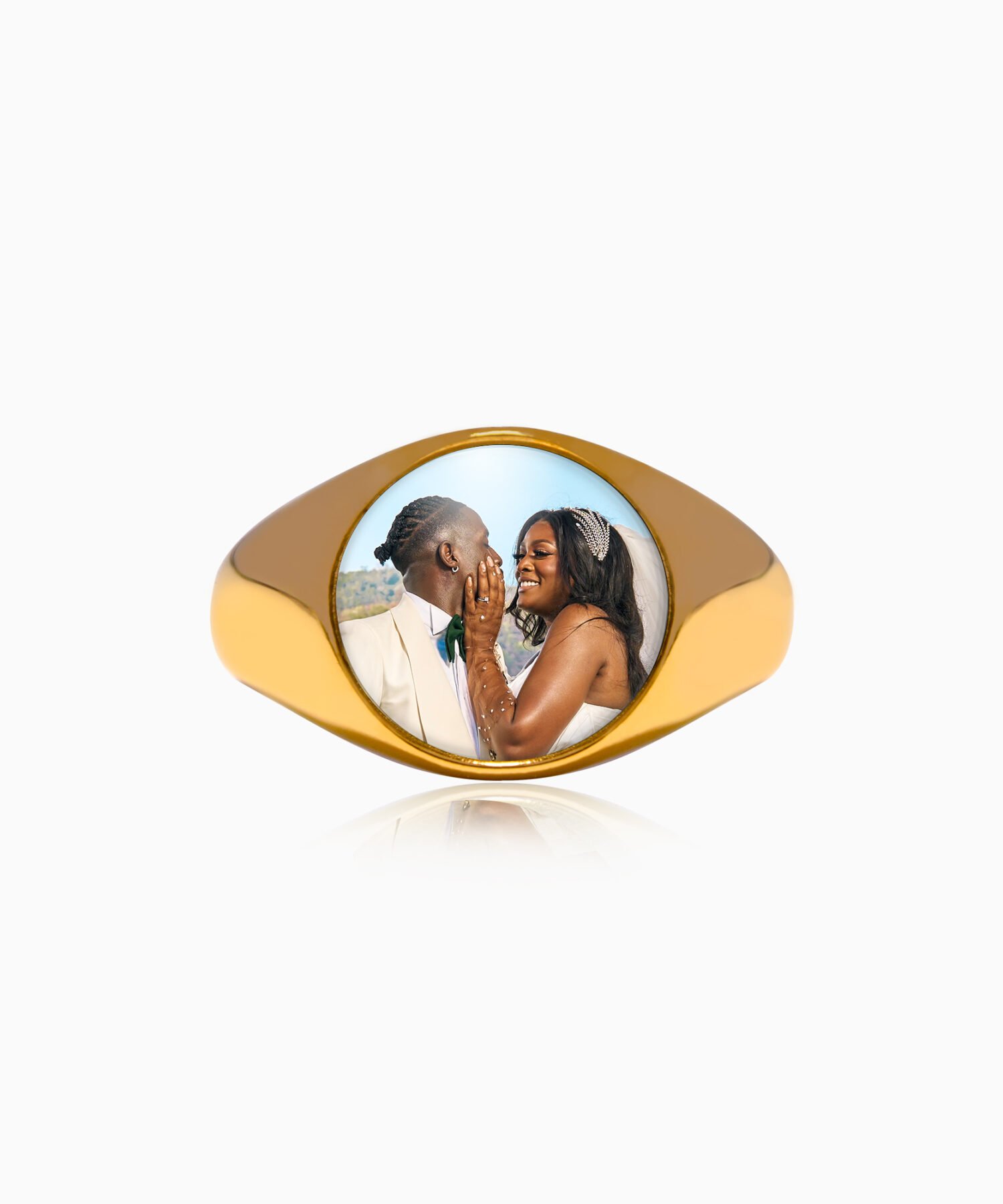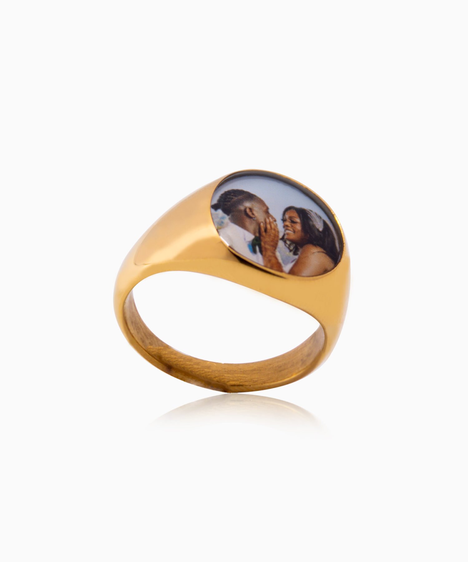 Create a Lasting Memory Today! Order your personalized round gold photo ring and transform a meaningful photo into a timeless piece of jewelry. Cherish your memories with elegance and sophistication every day.